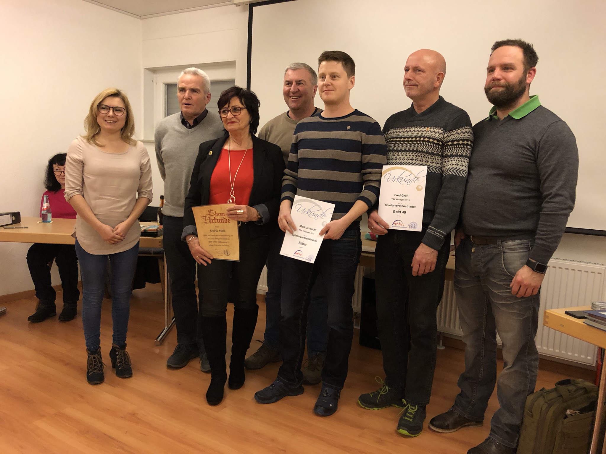 | 50 Jahre bei gleichzeitiger Ernennung zum Ehrenmitglied | Jürgen Schneidmüller, Brigitte Schmolke, Helmut Peppelenbos, Gerda Müller, Marga Kafka, Heinrich Nanz |